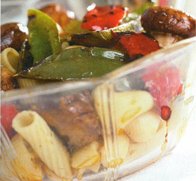 en sauce af sojasauce, sherry og citronsaft, som går super godt med pastaen.